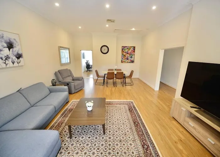 Situated only 6 minutes' stroll from Chatswood Library, the 2-bedroom Elegant Cozy House In Chatswood, Maxi 10 People Sydney villa offers quick access to numerous city landmarks nearby.